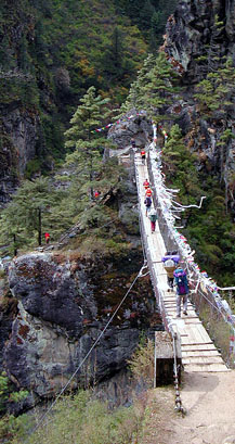 Trees such as rhododendron, birch, blue pine, juniper and silver fir are found up to an altitude of 4,000 meters above which they give way to scrub and alpine plants. In late spring and summer, the hillsides around the villages of Namche Bazaar, Khumjung, Thyangboche and Thame are a riot of colours with several species of rhododendon in bloom. Wildlife most likely to be seen in Sagarmatha are the Himalaya tahr, ghoral, musk deer, pikka (mouse hare) weasel and occasionally jackal. Other rarely seen animals are Himalayan black bear, wolf, lynx and snow leopard. Birds commonly seen are Impeyan pheasant, blood pheasant, snow cock, snow pigeon, red billed and yellow billed chough, Himalayan griffin vulture and lammergeier. |