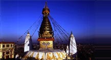 Kathmandu valley has an exotic setting. It is surrounded by tier upon tier of green mountain walls above which tower mighty snowcapped peaks. The valley covers an area of 218 sq miles. It is situated at 1310 meter above the sea level.