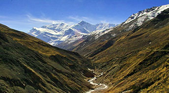 The views of the mountains are spectacular, and the route actually crosses to the other side of the main Himalayan range for some unusual views of the northern flanks. |