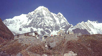 Annapurna base camp trek is famous for trekkers. The principal peaks of the western portion of the great Annapurna Himal, including Hiunchuli, Annapurna South, Fang, Annapurna, Ganagapurna, Annapurna 3 and Machhapuchhare, are arranged almost precisely in a circle about 10 miles in diameter with a deep glacier-covered amphitheater at the center. From this glacier basin, known as the Annapurna Sanctuary, the Modi Khola knifes its way south in a narrow gorge fully 12,000 ft. deep. Further south, the gorge opens up into a wide and fertile valley, the domain of the Gurungs. The middle and upper portions of Modi Khola offer some of the best short trekking routes in Nepal, and the valley is located so that these treks can be easily combined with treks into the Kali Gandaki region to the west. In spite of the great heights of the surrounding peaks and ice walls, the valley floor between 12,000 and 14,000 ft. can provide comfortable camping spots in good weather. |