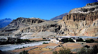 Mustang trekking is one of Nepal's most mysterious and least known kingdoms. The landscape of Mustang is a barren moonscape of eroded sandstone pillars and discontinuous moraine terraces, which together present a colorful mosaic made up principally of earthen reds, yellows and brown. It is relatively easy trekking along the permitted route to Lo Manthang, which lies in the very heart of Mustang. The trek to Mustang is through an almost treeless barren landscape. Strong winds generally howl across the area in the afternoon, generally subsiding at night. Being in the rain shadow of the Himalaya, Mustang has much less rain then the rest of Nepal.